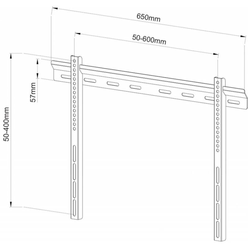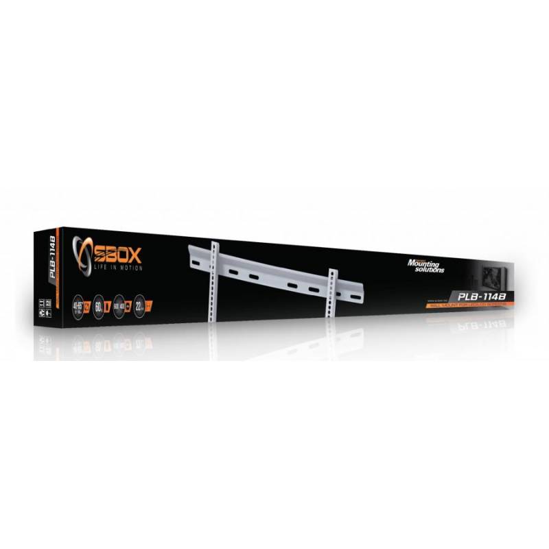 0616320530297 Sbox PLB-114B 40″-70″ fali konzol,fix. VESA 600×400. Max. terhelhetőség:60kg. Döntés:-. Faltól való távolság:22mm.Forgatás:-