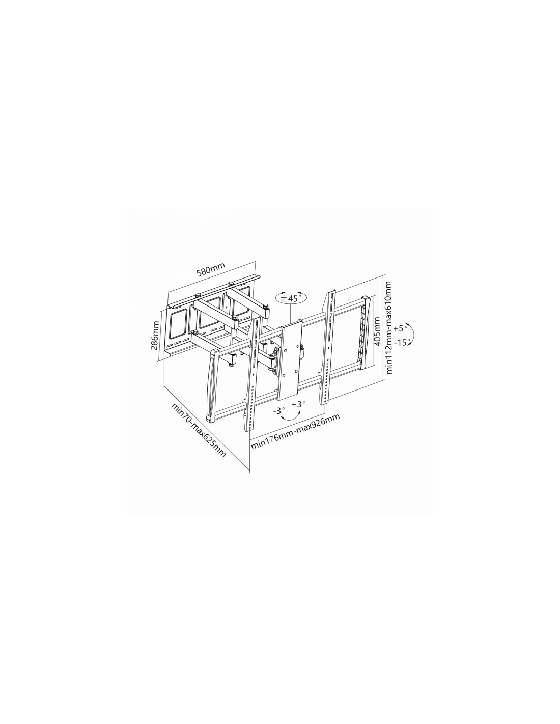 Sbox PLB-3769 dönthető, forgatható fali konzol, 60″- 100″ (152 – 254 cm). VESA: 200×200 – 600×900, Maximális terhelhetőség 80 kg.
