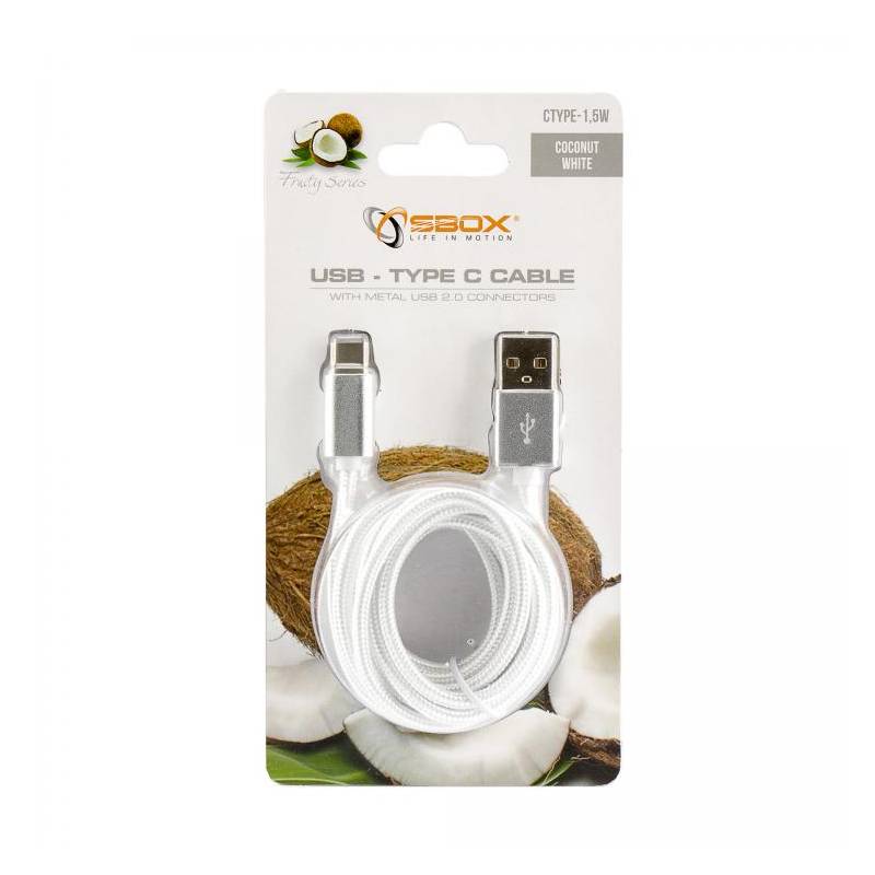 0616320536305 Sbox USB-TYPEC-15W kábel M/M-1M,fehér. Erősített szövet borítás. Több féle színben.